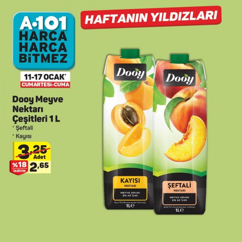 - Dooy Meyve Nektarı Çeşitleri 1 Litre 2,65 ₺