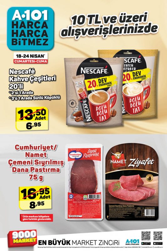 - Nescafe Kahve Çeşitleri 20’li 6,95 ₺ (10 ₺ üstü alışverişlerde geçerli fiyat)