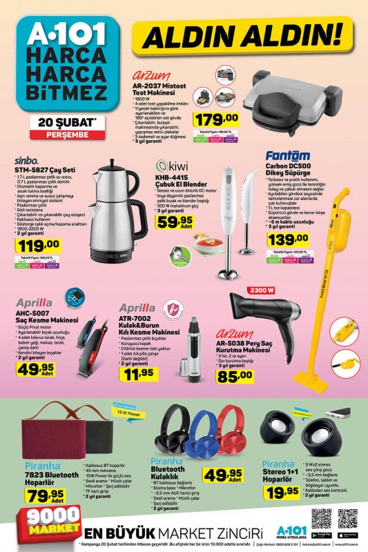 A101 Aldın Aldın 20 Şubat Perşembe kampanyalı ürünleri tam size göre.