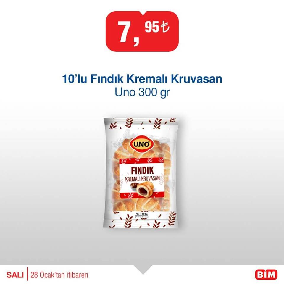 • Uno Fındık Kremalı Kruvasan 10’lu 300 gr 7,95 ₺