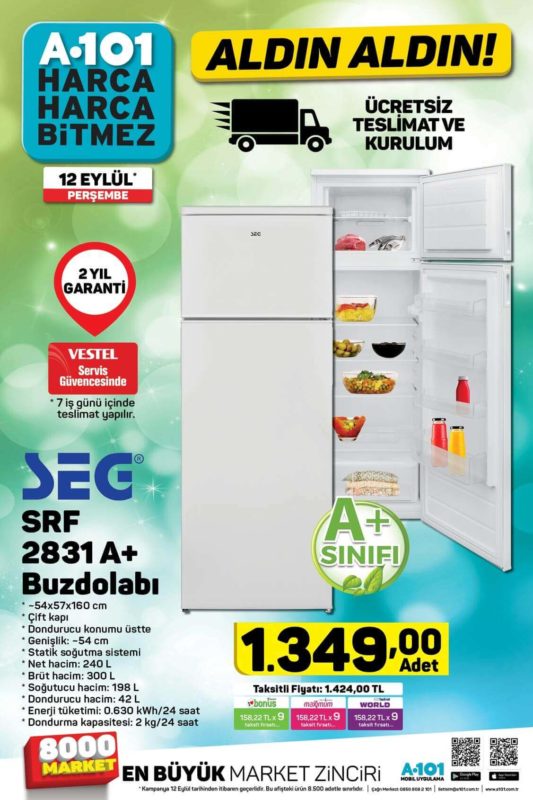 - SEG SRF 2831 A+ Buzdolabı 1.349 ₺