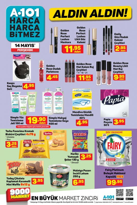 A101 Aldın Aldın 14 Mayıs Perşembe kampanyalı ürünleri tam size göre.