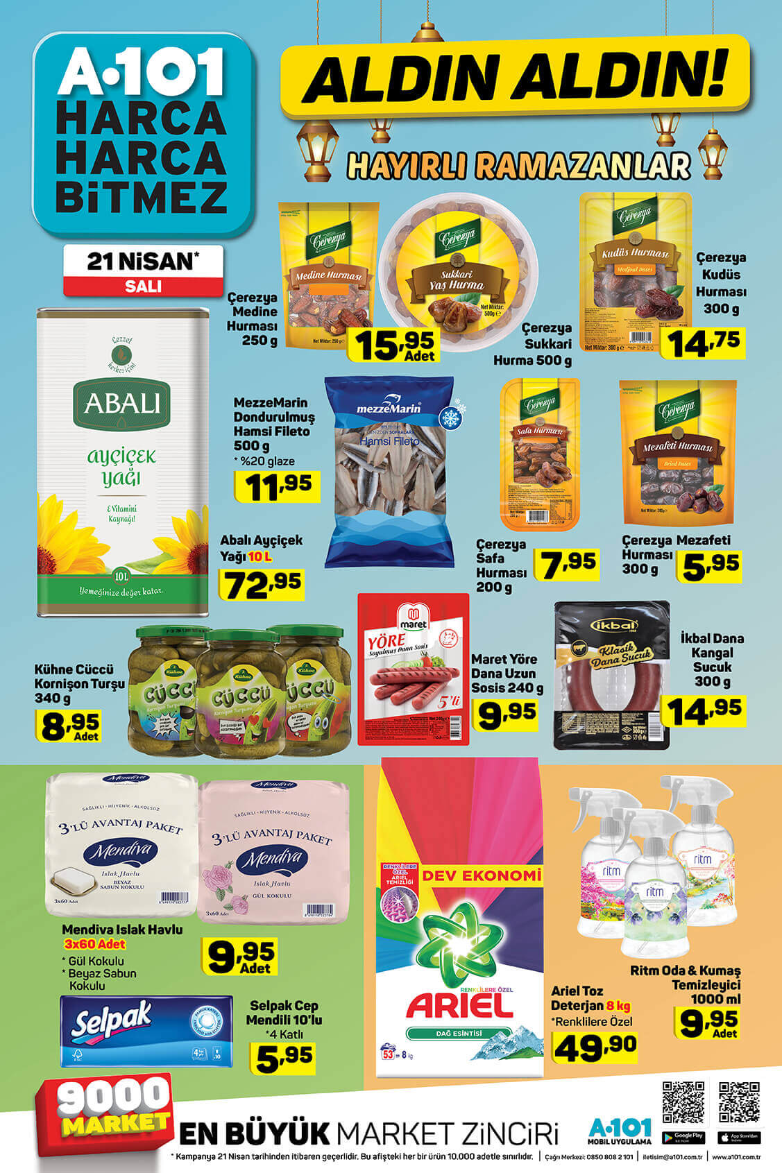 A101 Aldın Aldın 21 Nisan Salı kampanyalı ürünleri tam size göre.