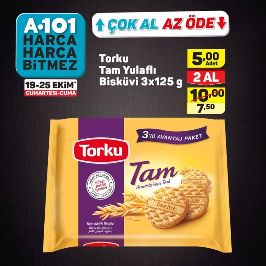 • Torku Tam Yulaflı Bisküvi 3×125 gr 7,50 ₺ (2 adedin fiyatı)
