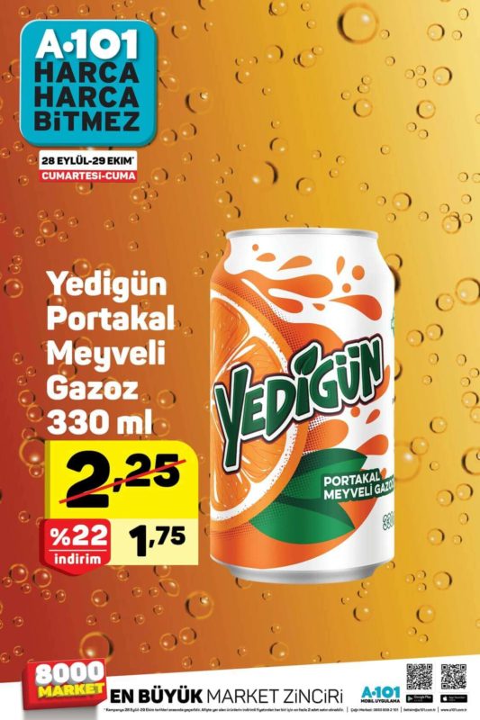 - Yedigün Mandalina Gazlı İçecek 1,5 Litre 2,95 ₺
