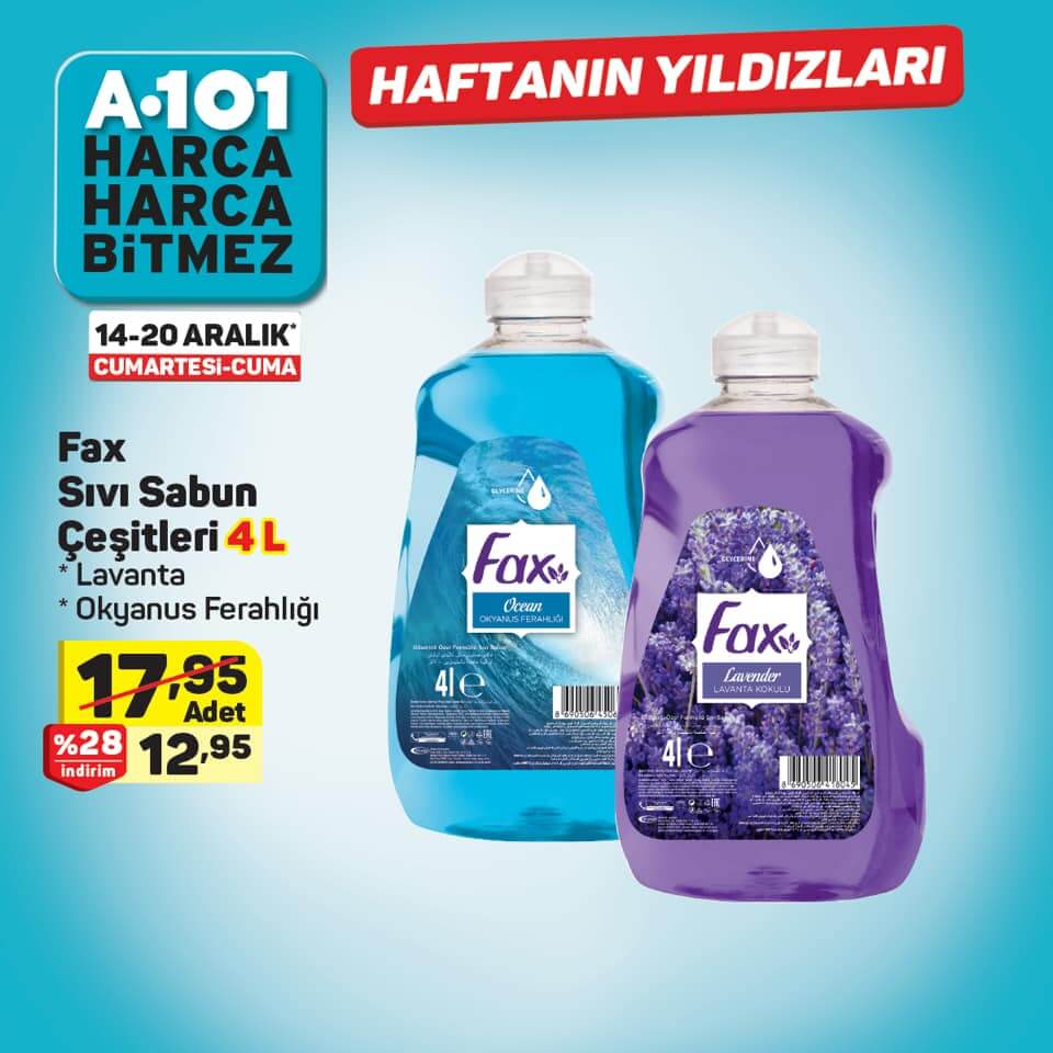 - Fax Sıvı Sabun Çeşitleri 4 Litre 12,95 ₺