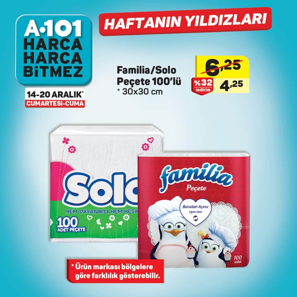 - Familia / Solo Peçete 100’lü 4,25 ₺