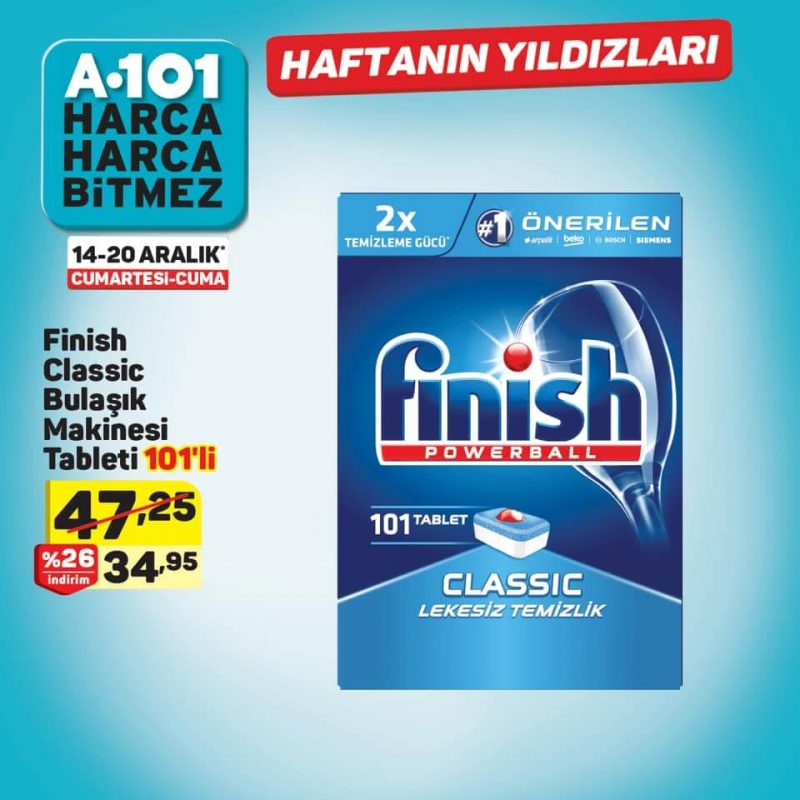 - Finish Classic Bulaşık Makinesi Tableti 101’li 34,95 ₺