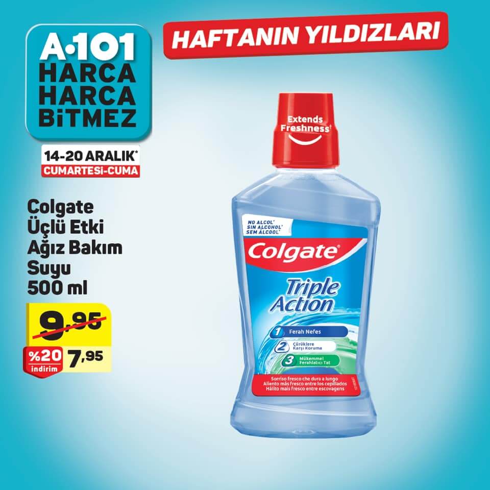 - Colgate Üçlü Etki Ağız Bakım Suyu 500 ml 7,95 ₺