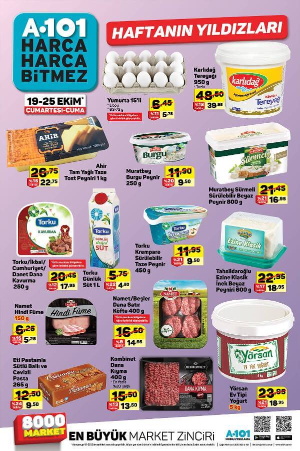 A101 Haftanın Yıldızları 19-25 Ekim Cumartesi-Cuma kampanyalı ürünlerini tam size göre.