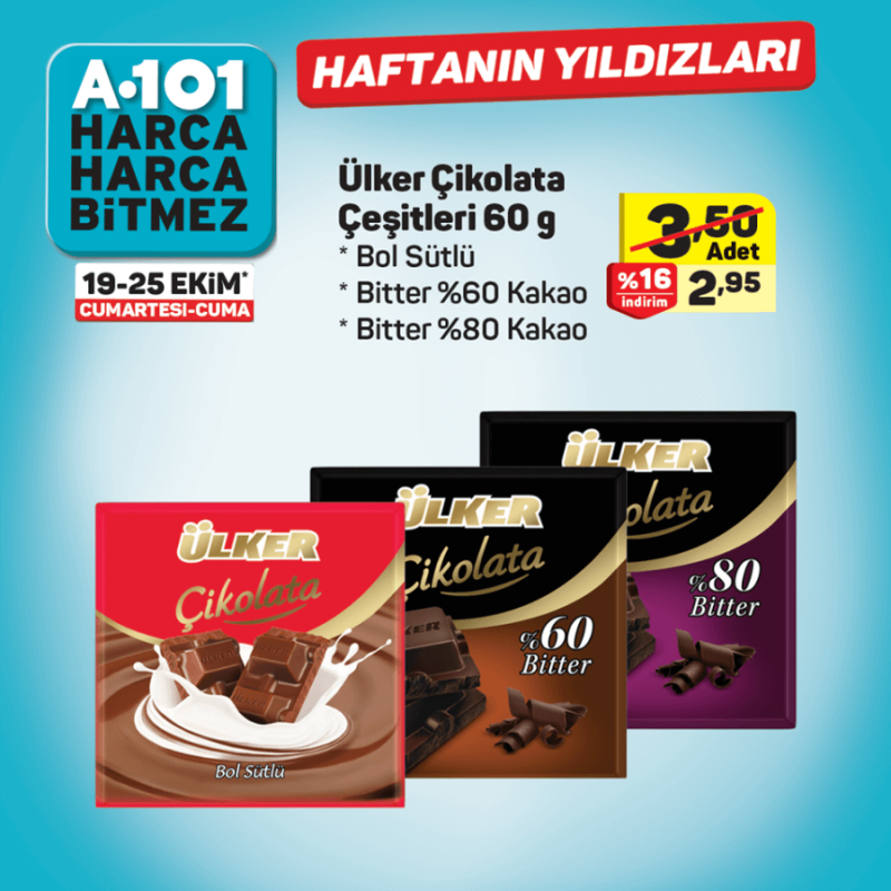 - Ülker Çikolata Çeşitleri 80 gr 2,95 ₺