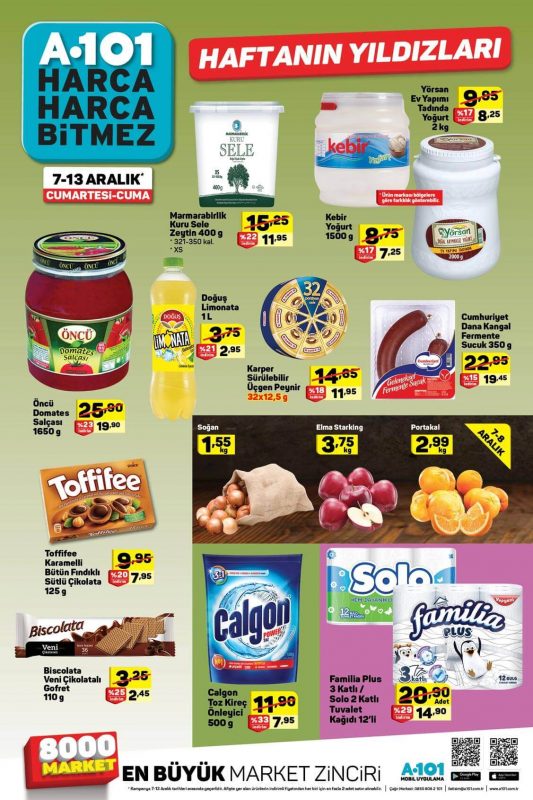 A101 Haftanın Yıldızları 7-13 Aralık Cumartesi-Cuma kampanyası tam size göre.