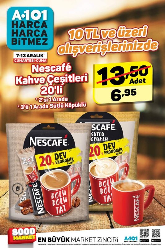 - Nescafe Kahve Çeşitleri 20’li 6,95 ₺ (10 ₺ üstü alışverişlerde geçerli fiyat)
