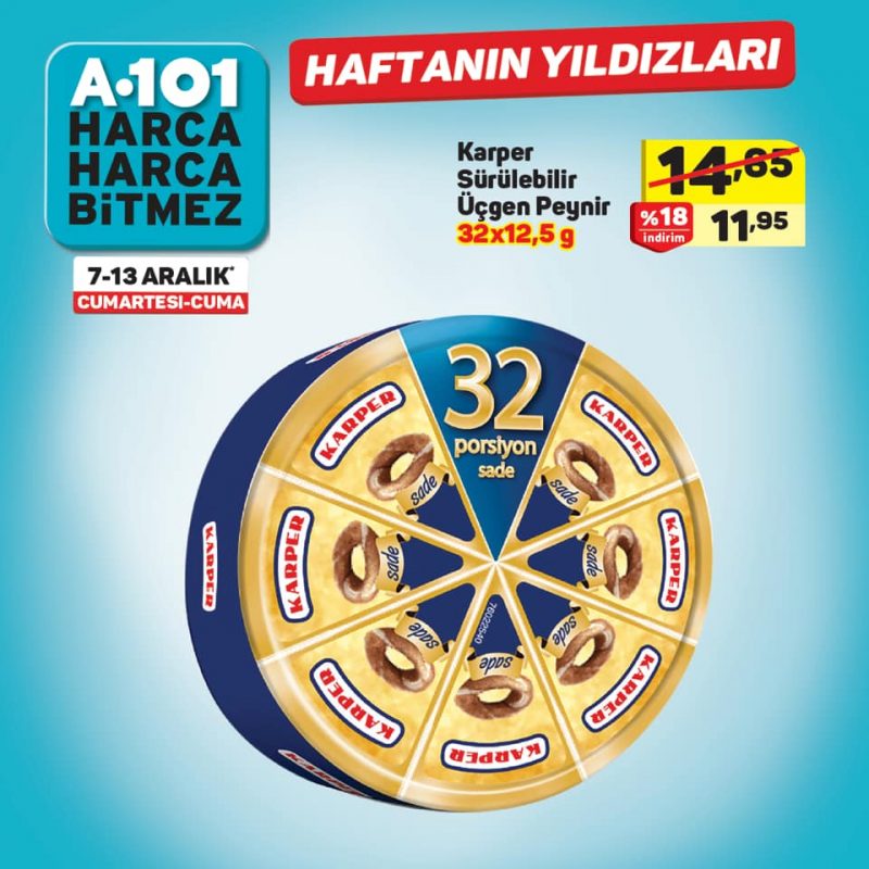 - Karper Sürülebilir Üçgen Peynir 32×12,5 gr 11,95 ₺