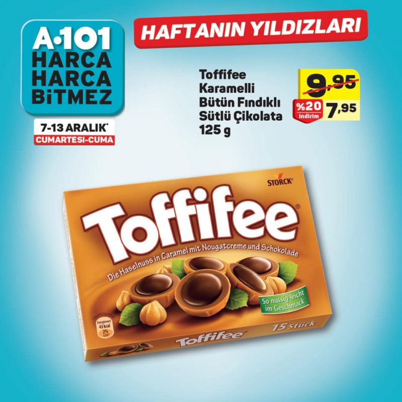 - Toffifee Karamelli Bütün Fındıklı Sütlü Çikolata 125 gr 7,95 ₺