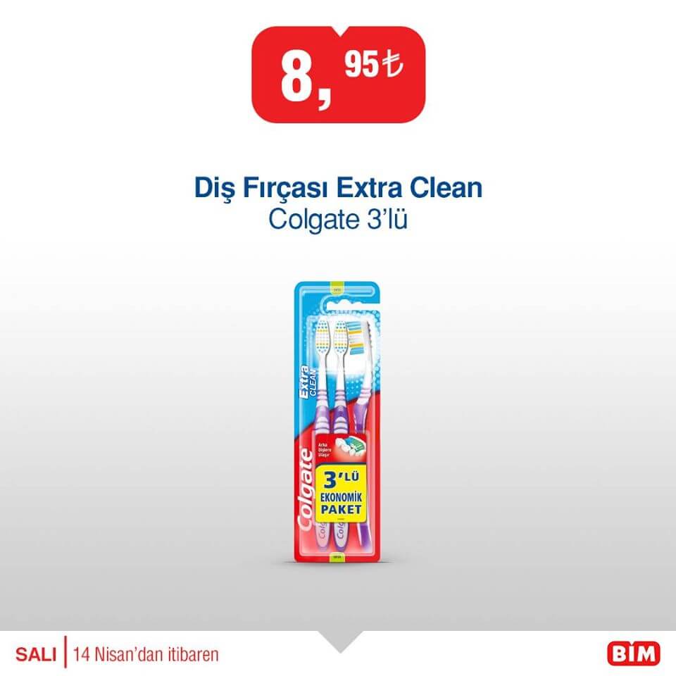 - Colgate Diş Fırçası Extra Clean 3’lü 8,95 ₺