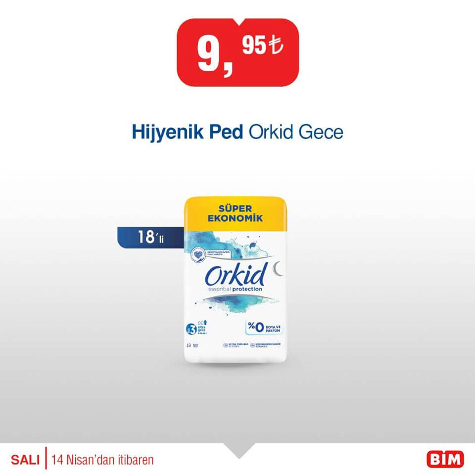 - Orkid Hijyenik Ped Gece 18’li 9,95 ₺