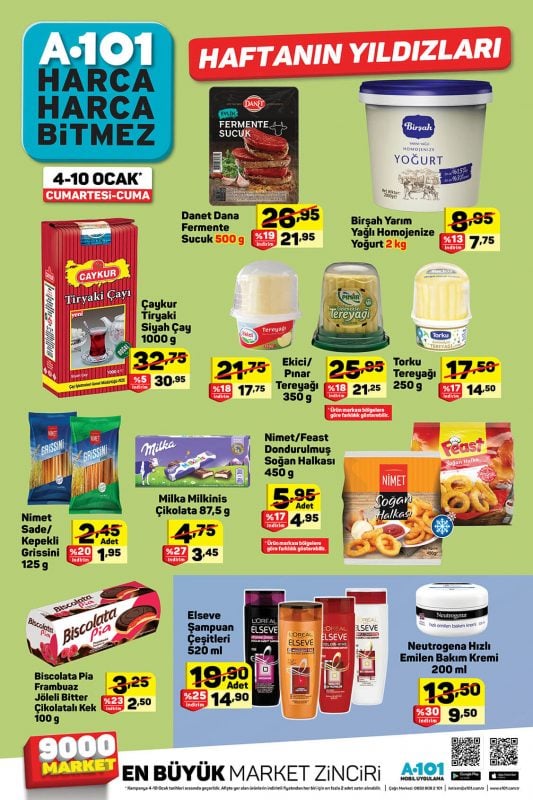 A101 4-10 Ocak Haftanın Yıldızları Cumartesi-Cuma kampanyası tam size göre. A101 Market kampanyalarındaki ürünler, İhtiyaçlarınıza en uygun çözümler için hazırlanmıştır. A101 fırsatları, aktüel kampanyalar, en iyi, en ucuz, en kaliteli ve en hesaplı ürünler. Kampanyaların site içi videoları burada. YouTube video kanalımız için tıklayınız.